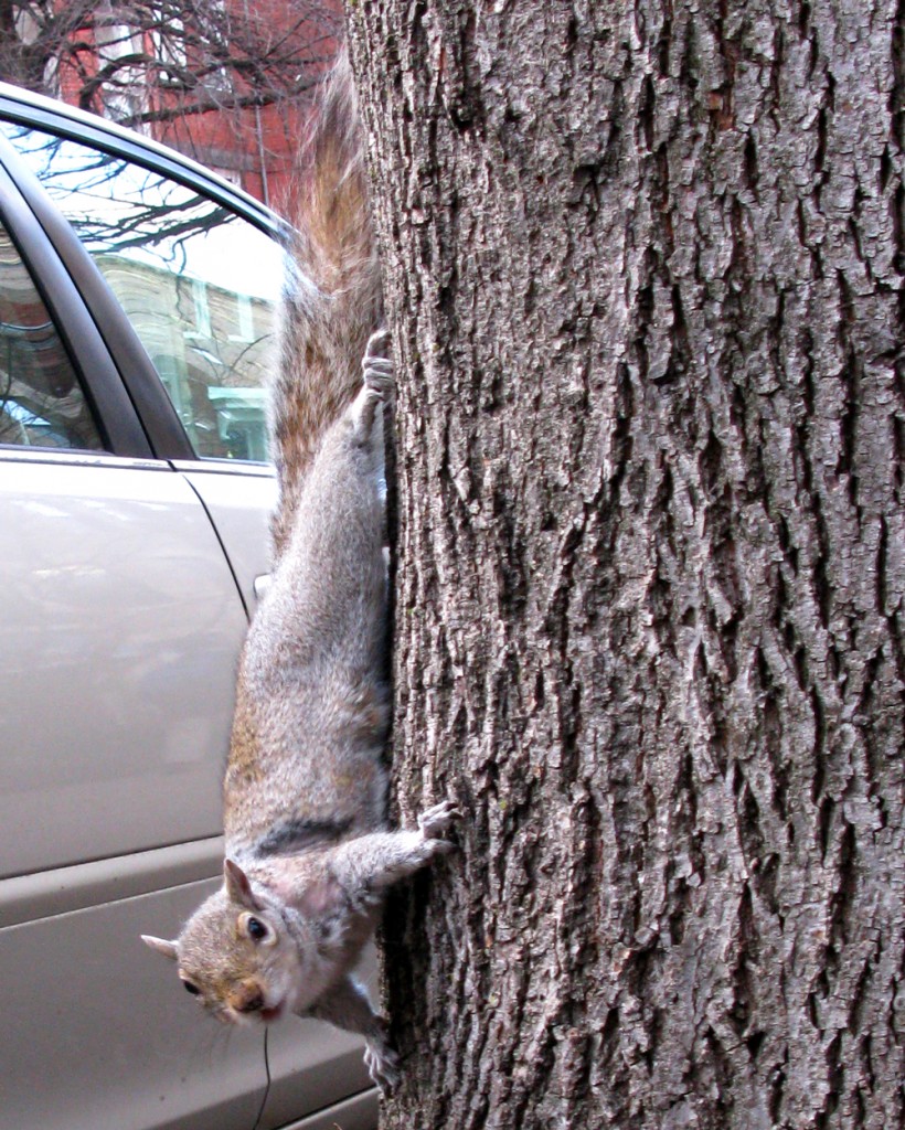 Squirrels are the best pea-brains I know of. Oportunistic, curious, adaptable; and wonderfully forgetful. It always makes me smile when passing a tree, rock or building, with a little tree growing out of it. Forgotten nuts moves nature around.